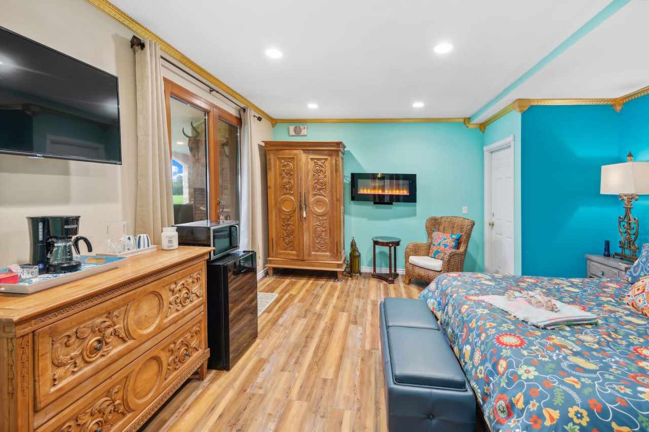 The ultimate in luxury! A sanctuary for couples looking for a romantic retreat on the water. This private guest suite has a private entrance, bedroom, bathroom, kitchenette, and patio in a wing of a palatial home providing the nicest the Hamptons can offer without renting a whole house. 70 mi from NYC, this great escape offers a pool, jacuzzi and panoramic views. Book your romantic getaway now and connect with nature, from the bay breeze, to brilliant sunsets, to the melodic sounds of the sea. The King Suite boasts unparalleled bay views and has its own private entrance through the patio, a private en suite bathroom, and a private kitchenette complete with a microwave, toaster, mini fridge, & sink. The patio has a serene lounge area with seating facing the bay for coffee or dining. It offers everything anyone could possibly want for a luxurious, quiet, peaceful retreat to the Hamptons. Guests have access to all shared spaces on the property exterior including the gunite pool, waterfall jacuzzi, extra wide grandfathered dock and bulkhead. There may be literally no better place to enjoy a breathtaking sunset. Please note the pool, jacuzzi, and outdoor sinks are currently closed for the winter season and will reopen in spring. This gem is located in Remsenburg, New York, 70 miles from Manhattan and since it is the closest of the Hamptons, it allows you to enjoy a sunset drink while everyone else is still driving out East! Remsenburg is a secret hideaway only minutes to Westhampton Beach. The town and the beach are within a short 10 minutes drive or a bicycle ride away. We are close to dozens of vineyards, shopping, movies and several golf courses. (15 miles from the home of the 2018 PGA US Open golf tournament at Shinnecock Hills, Southampton). Several golf courses nearby include Shinnecock Hills (PGA US Open), Indian Lake and Cherry Hill. Beautiful beaches, the town of Westhampton, movies and performing arts center are within 10 minutes drive. We are 15 minutes from the North Fork wineries, breweries and Tanger Outlets. we are only 1.5 miles from restaurants, grocery store, liquor store, and New York's finest bagel shops. - About the area - Serene Beaches and Nature Reserves: Immerse yourself in the natural beauty of the area starting at Cupsogue Beach County Park, celebrated for its soft sands and vibrant marine life, ideal for fishing and seal watching during the cooler months. For those seeking tranquility, Rogers Beach offers a more secluded beach experience with stunning ocean vistas. Exquisite Culinary Delights: Dine at Trumpets on the Bay, known for its exceptional American-Continental cuisine served against the panoramic views of Moriches Bay. For a casual day out, John Scott’s Surf Shack on the waterfront offers a relaxed atmosphere with hearty meals perfect for after a day in the sun. Grab a Sunday brunch at Eastport Luncheonette where the old school charm enchants while pillowy pancakes stack high on your plate. Adventure and Leisure: Experience luxury with exclusive yacht rentals for a day of sailing on the pristine waters of The Hamptons or join local efforts at the Moriches Bay Project, where you can learn about sustainable practices and marine conservation. Rent a jetski or a dinghy nearby at Silly Lilly's and cruise Moriches Bay in style. Cultural and Recreational Activities: Visit the Westhampton Beach Performing Arts Center for an array of performances, from concerts to theater plays, catering to diverse tastes and interests. For wine enthusiasts, explore the renowned vineyards of the North Fork like Paumanok Vineyards, offering a taste of Long Island's best grapes. There are few better ways to spend an afternoon than vineyard hopping. Transit: We are accessible by car, the Hampton Jitney and the Long Island Railroad. The property is 70 mi from Manhattan and usually takes 90 minutes driving. The nearest train station is LIRR's Speonk Station, a gorgeous 20 min walk/ 5 min drive away. Owner or host may be on site to assist with any needs or advice, but always a phone call away to help however we can. Other listings provided by Dan and 100+ 5-star reviews from other happy travelers – Put the listing number in "search destination" to locate Hamptons: 1736731 - Luxurious Waterfront Retreat: Unwind in Hamptons Paradise - www.vrbo.com/1736731 1583241 - Endless Water Views: Your Hamptons Oasis Awaits - Book Now - www.vrbo.com/1583241 1271920 - Hamptons Waterfront Paradise - www.vrbo.com/1271920 Aruba: 1179262 - Romantic Beachfront One-Bedroom Villa - www.vrbo.com/1179262 3779585 - Beachfront Suite & Spacious Patio - www.vrbo.com/3779585 1887551 - Beachside One-Bedroom Suite - www.vrbo.com/1887551 1180855 - Beachfront Two-Bedroom Villa - www.vrbo.com/1180855
