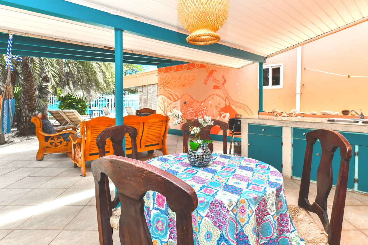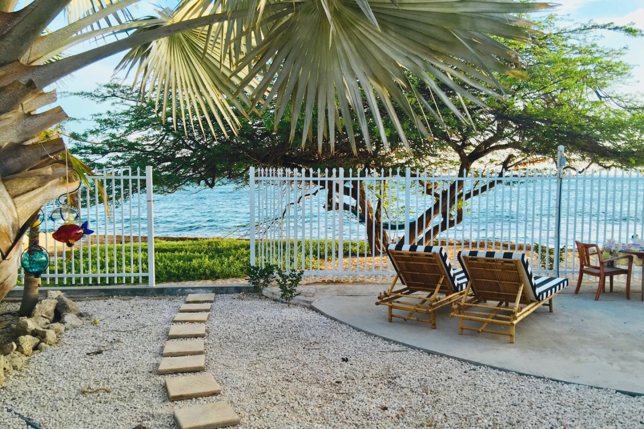 Right on the beach! Wake up to the sound of the sea and experience Aruba as it should be! Step from your private patio onto powdery white sand. Dive into a crystal-clear Caribbean sea, teeming with marine life. Or simply soak up the rays, basking in the sun on a secluded stretch of pristine beach. Our home, one of few in Aruba directly on the beach, offers a true oceanfront escape. Here, nature is your host, and the rhythmic waves your constant companion. Our One-Bedroom Villa is perfect for a romantic getaway. The villa features a king-size bed, a living room & kitchen, and a recently renovated modern bathroom with a hot water shower. The kitchen is fully equipped with everything you need to create your culinary masterpieces. It has a full size refrigerator, Victorinox knife set, stainless steel pots & pans, microwave, toaster, drip coffee machine, electric stove, and of course, blender for those spectacular sunset drinks. Enjoy the outdoor kitchen, serene seated area, and covered patio set against the backdrop of a palm garden with stunning ocean views. ☀ Direct beach access: Soft sand, swimmable sea, and vibrant reef steps from your patio ☀ Plush king bed and a recently renovated bathroom with hot water shower ☀ Expansive covered private beachfront patio with Zen-inspired décor, perfect for yoga, meditation, al fresco dining or a candlelit dinner on the beach. Patio area includes a dining table, chairs, hammock, & loungers for relaxation. ☀ Unique outdoor kitchen area with sink in a marble countertop, and Bar-B-Q ☀ Hammock for lazy afternoon naps alongside the ocean breeze ☀ Enjoy the surf and sand with the following complimentary amenities: kayaks, life jackets, masks, snorkels, fins, beach chairs, and coolers ☀ Outdoor shower to rinse off after beach activities ☀ Gated property for enhanced security and privacy ☀ Remote work: monitor, ergonomic chair, laptop stand, & power strip available upon request Vibes like no other! Away from the crowds of hotel bustle, in a paradise garden right on the beach, among the chirping of birds and parrots, and in the constant rhythm of the surf. Share your lunch with hummingbirds in the garden or with pelicans on the beach. Escape to Robinson Cruso's world! ★ Highlight activities & experiences ★ ✩ Kayaking ✩ Complimentary kayaks available for guest use. Launch directly from the backyard into crystal-clear waters. Explore offshore islands and adventure through mangrove forests as you immerse yourself in the breathtaking coastal scenery. ✩ Scuba & Snorkeling ✩ Gear up in your own patio and dive right into adventure! Whether you're a scuba diver or a snorkeler, you'll find paradise a mere swim away thanks to a stunning 100-foot sloping reef teeming with tropical fish, a friendly family of turtles, and vibrant coral. Renowned as one of the best snorkeling sites in the Caribbean, this underwater wonderland is perfect for all levels of explorers. Experienced English-speaking dive masters are just a phone call away for private dives directly from our beach or other top spots around the island. We provide masks, snorkels, fins, and personal floatation devices to ensure you have an unforgettable experience in these crystal-clear waters. ✩ Fishing & Boating ✩ Catch right off of the dock by our villa and if you want a real adventure, charter a traditional boat from the docks down the street, or head to port to charter a fully-equipped deep sea fishing boat or even a beautiful sailboat to take you snorkeling around the island, catch the sunset, and enjoy the views. ✩ Kiteboarding and Windsurfing ✩ Aruba's coastline is perfect for water sports enthusiasts! Just a short drive from the property, you can experience world-class kiteboarding and windsurfing at Grapefield/Boca Grandi, Fisherman's Huts, and Hadicurari Beach. The consistent trade winds and clear, warm waters create ideal conditions for both beginners and seasoned pros. Dive into the thrill of the waves and enjoy an exciting day on the water. ✩ Dining & Nightlife ✩ Two of Aruba's most exceptional restaurants are within walking distance along our stretch of beach. One is Zeerover, the popular wharf-like spot among locals and tourists alike, serving up the day's catch in a casual, laid-back setting right on the water. It’s a great place to grab drinks, dinner, or fresh fish for the grill back home. The other is the romantic Flying Fishbone where you can sit at a transporting white-tablecloth restaurant and have a gourmet meal with your feet in the ocean. But these are only two of the many great bars and restaurants in the neighborhood. ✩ Shopping & Groceries ✩ A local supermarket is just a 5-minute walk away, making it easy to pick up essentials. Additionally, there are several other supermarkets and shopping centers within a short driving distance, offering a variety of options for all your needs. ✩ Remote work ✩ Make your coworkers green with envy as you dial into meetings with the sound of the sea in the background, with wifi speeds north of 100mbps and a monitor, ergonomic chair, laptop stand, & power strip available upon request. Just try not to rub it in too much. ✩ Exploring Arikok National Park ✩ For adventure enthusiasts and nature lovers, Arikok National Park is a must-visit! The park offers a variety of activities including hiking scenic trails, offroading through rugged terrain, and exploring unique flora and fauna. Whether you prefer a leisurely hike or an exhilarating offroad adventure, Arikok National Park provides an unforgettable experience amidst Aruba's stunning natural beauty. ✩ Birdwatching ✩ Spot local and migratory birds, including troupials, sugar thieves, green parrots, pelicans, frigatebirds, and more. ✩ Beach yoga ✩ Start your day with sun salutations on the sand (mats available upon request). ✩ Star gazing ✩ Clear night skies offer excellent conditions for admiring constellations and occasional shooting stars. 
